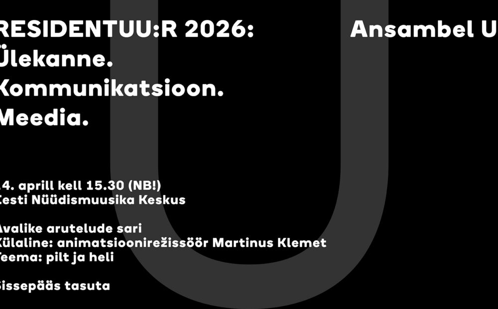 Ansambel U: on üks nüüdismuusika eestvedajaid Eestis. Et mitte piirduda pelgalt kontsertidega, mõeldi välja avalike kohtumiste, “Reisdentuu:ride” sari. 2026. aastal on “Residentuu:ri” teemaks “Ülekanne. Kommunikatsioon. Meedia”. Eesmärk on püüda laiemas mõttes vaadelda sõnumite-mõtete-ideede edasiandmist, tõlkimist ühest meediumist teise, suhtlust ja kommunikatsiooniprintsiipe, mis on kogu kunstiloome aluseks. Ühtlasi esitab U: teemadega seotud valitud teoseid.